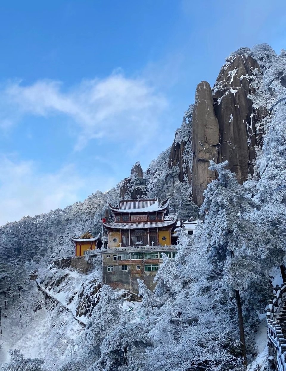 黃山,位于安徽省黃山市,原名黟山,唐朝時更名為黃山,取自“黃帝之山”之意。黃山是世界自然和文化雙遺產,世界地質公園,中國十大名勝古跡之一,國家5A級旅游景區。 黃山風景區面積160.6平方千米,東起黃獅 ,西至小嶺腳,北始二龍橋,南達湯口鎮,分為溫泉、云谷、玉屏、北海、松谷、釣橋、浮溪、洋湖、福固九個管理區,包括200多個大小景點。 黃山以奇松、怪石、云海、溫泉、冬雪“五絕”著稱于世,擁有“天下第一奇山”之稱?!拔逶罋w來不看山,黃山歸來不看岳”是對黃山最好的評價。